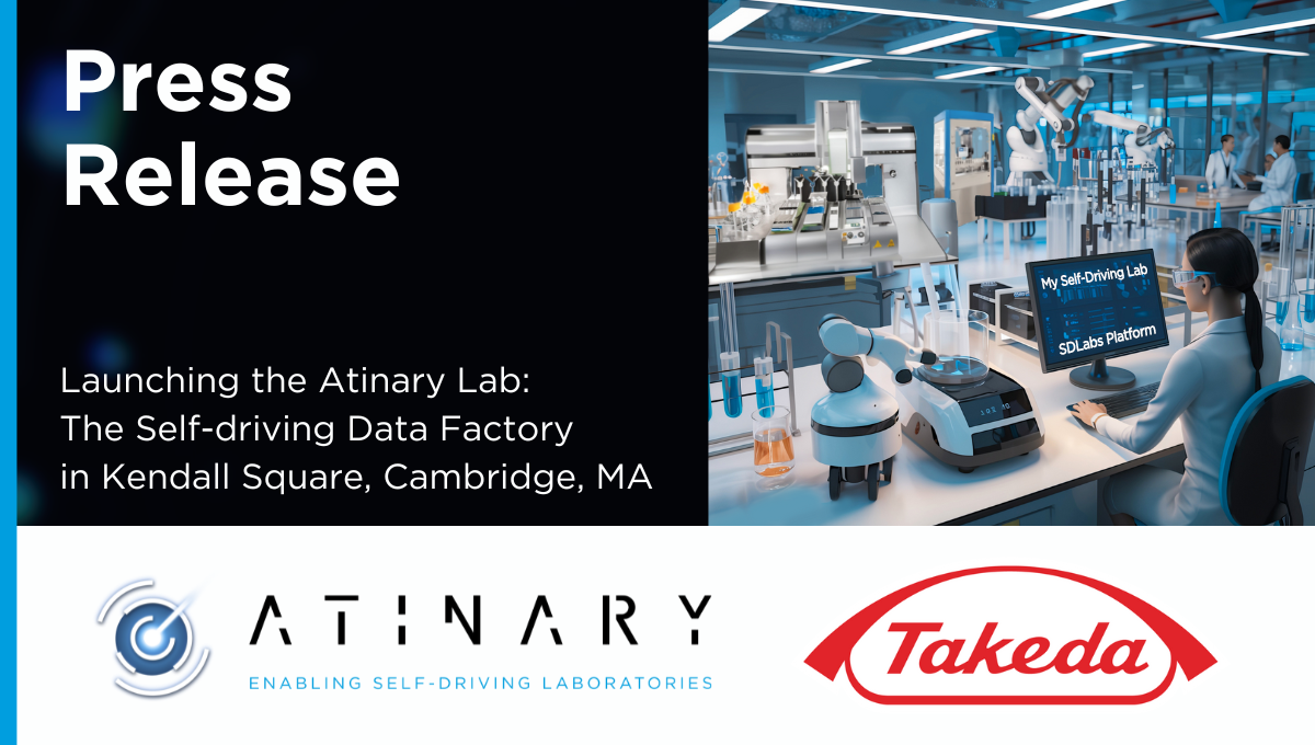 MENLO PARK, California, and LAUSANNE, Switzerland – November 7, 2024 – Atinary Technologies is excited to announce an expanded collaboration with Takeda Pharmaceuticals, the largest pharmaceutical company in Japan. The launch of the Atinary Lab, the Self-driving Laboratory™, is a groundbreaking leap toward reshaping the future of R&D with AI-driven, automated workflows in drug discovery and advanced chemistry. Atinary Lab will bring to life the unparalleled potential of SDLabs™, Atinary’s no-code AI platform, alongside cutting-edge autonomous technology. This project will contribute to setting new standards for tackling complex challenges in life sciences and beyond. The Atinary Lab will be located in Kendall Square, Cambridge, MA.